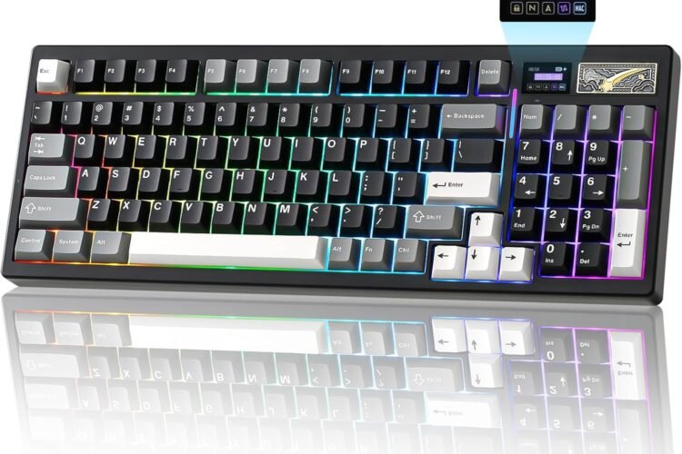 The customizable LCD screen — unusual at this price point — lets you add useful info or fun imagery directly on your keyboard, and the RGB lighting complements gaming setups or workspaces.